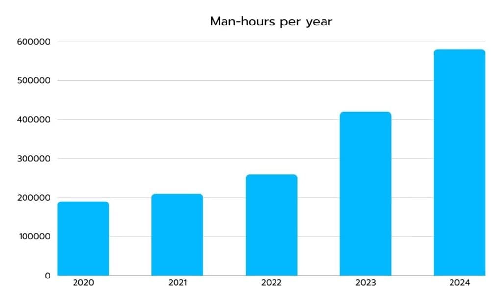 Man-hours | 190 000 | 210 000 | 260 000 | 420 000 | 581 000 |